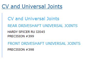I can confirm the Precision 399 is the correct ujoint for the rear.