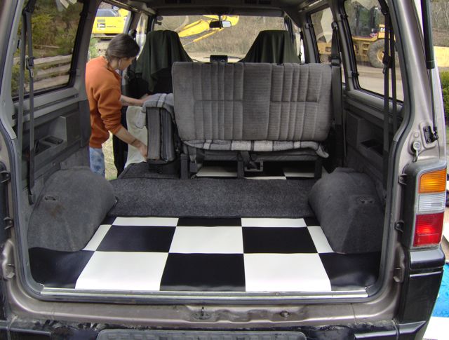 Yah know, if dog didn't need that bench seat, I would do it!! Great idea delica 304!You know what? You should remove the bench and replace it with diner chairs!