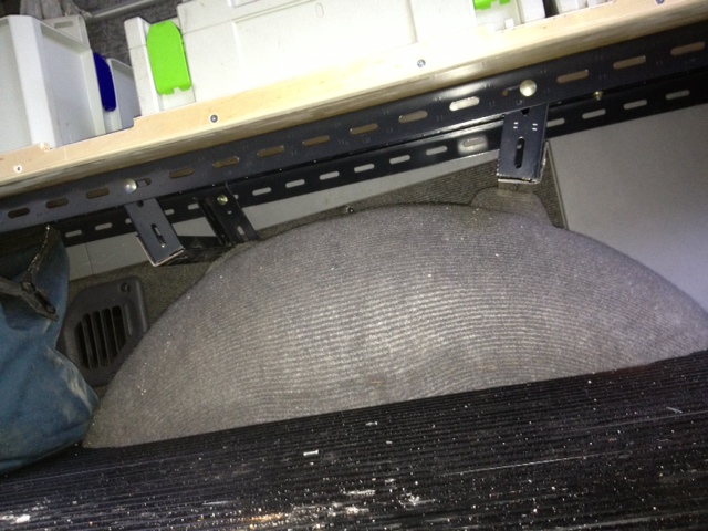 Shelves are semi permanent , hold the tools and stuff I need for work and leave lots of room for cargo,