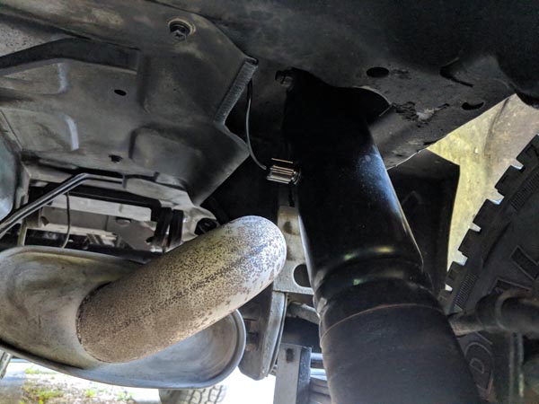 I estimated that the axle can move upwards by 30mm by measuring from the chassis rail to the clean, worn line on the bump stops, which is created when they deform from hitting the chassis rail. The actual measurement was closer to 25mm but I added 5mm for luck.
