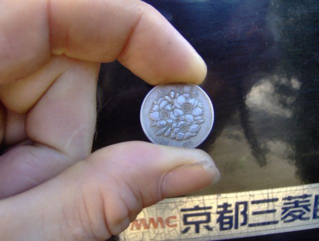This is the only coin, and best treasure, we found from Hazel's past life in Japan. We took the coin to Frenchman Tattoos here in CR and he translated it into tattoo and put it on her arm.