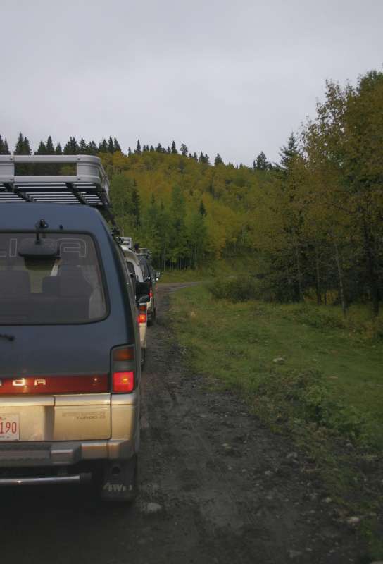 Can't have a Deli meet without a C O N V O Y !!! Complete with the convoy song played over the radios. Entering K-country, these were the first of many cattle 'round these parts... Final check before hitting the trails. No that's not a silver mini-Delica 3rd from the end, that's CalgaryHHR's ride.