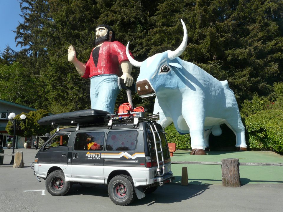 The world's largest cross country ski's in 100 Mile House BC... next to a very dirty Delica...