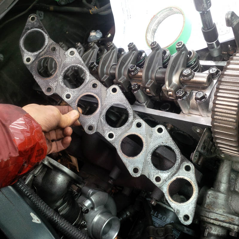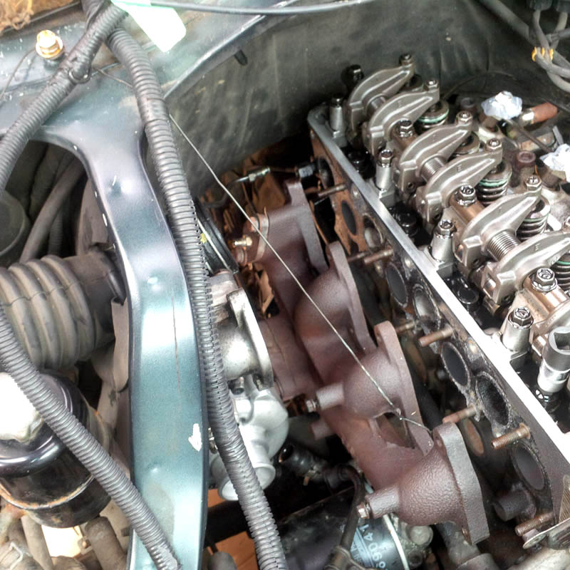 I did the same thing you are doing (sans the awesome picture diary) on my 1990 US Spec L300 gas model. Only I had to do it twice because the new head I got had the wrong length valves in it that wouldn't close so it wasn't making any compression. The LHD 2.4 litre gas model maybe seemed a lot more simple as it didn't have a turbo, and the hinged engine cover didn't need to be removed, just swung way up. Also had the extra room by Mitsubishi allowing you to unbolt the drivers seat, and the floor it was mounted to to gain more access. Excellent job with including all of these pictures! Keep up the good work. I hope I never have do what you're doing, but chances are I will at some point.