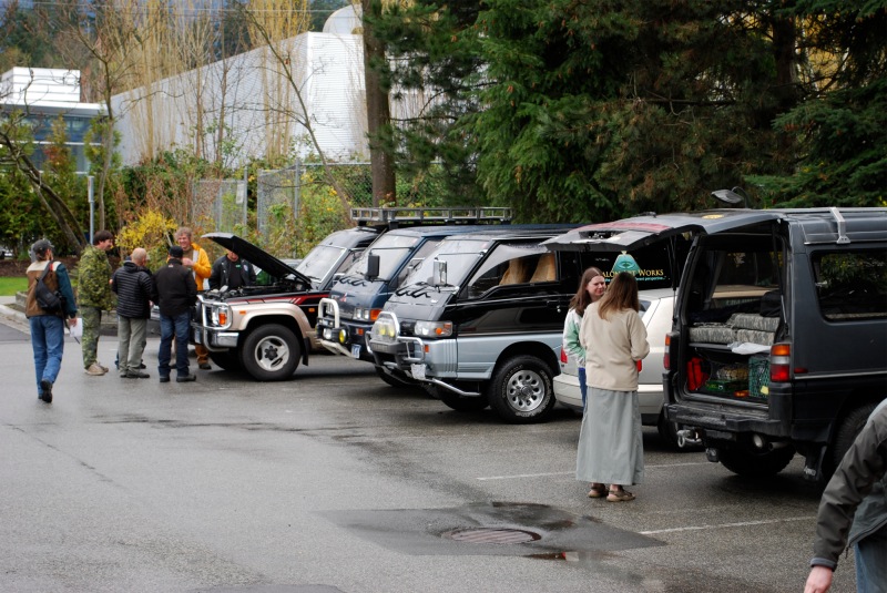 Total count: 12, but then another Pajero showed up (LWB 1993 Dakar Winner Version), and then as some of us were leaving, another L400. And I saw an L300 on the ferry going home, but they didn't know about the meet (gave them a sticker anyways). So that makes 15 vehicles and more than 30 people. A good turnout by my count.