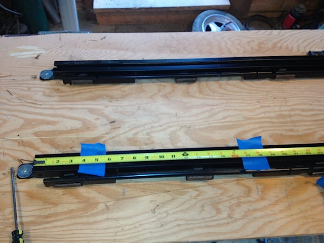 So I got another set of tracks couple weeks ago and we did a mock up in the van. Extending the tracks so that the middle row can be slid all the way to the front was not difficult. Just need to do a bunch of grinding and weld on new tabs. We did it so that the front section of track is not welded to the rear; just remove the fasteners and the end of the track is exposed, allowing seats to slide off the tracks. So if I am going on a road trip I simply remove the front rails and slide off one chair, then replace the track and the remaining chair on the track can slide way up front and back. This will work for the driver's side too.