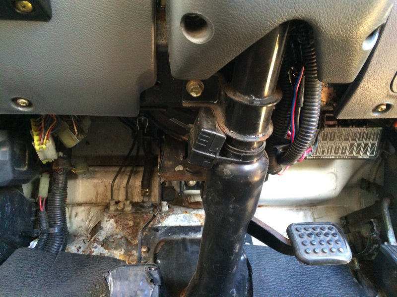 Backup alarm with possiblily a Japanese voice warning you that the van is backing up.car alarm shock sensor on the steering column ,antenna for the car alarm on the windshield .follow the wires there is probaly going to be a control box for the alarm system .