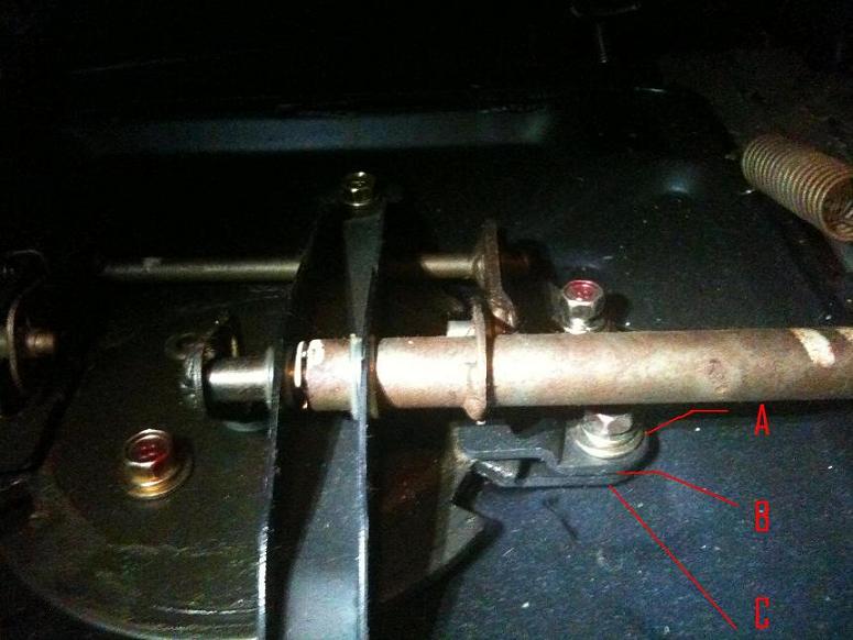 So I'm guessing that the washers go in your position C - in theory shimming up the plates to make up for that disintegrated nylon ring. I'm going to go do it now and see if it works - I'll update later.