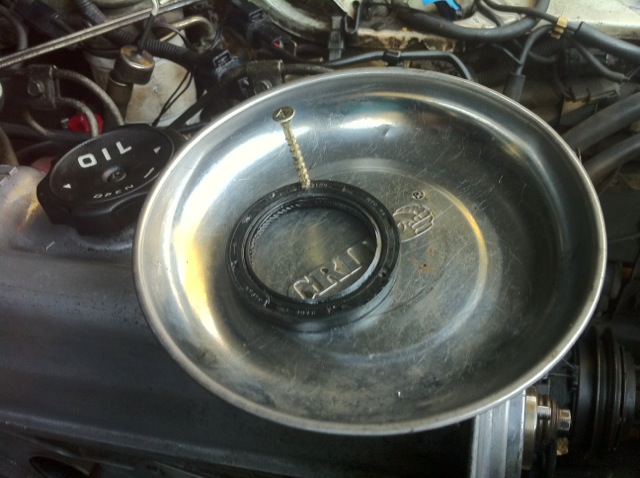 Great way I found to remove old oil seals, drill a small pilot hole in the metal portion of the seal turn a screw in and pull it out with pliers, without damaging any of the mating surfaces .