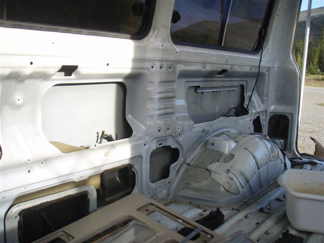 attached are a few photos of the progress/chaos. I am close to added the dynamat and insulation to the back - I plan on putting in a 17 inch tv in the rear on a fold down bracket, a sleeping platfom, and a epsar heater....I post pics as I progress - I have the next 3 weeks off work so I should get a lot done (hopefully)