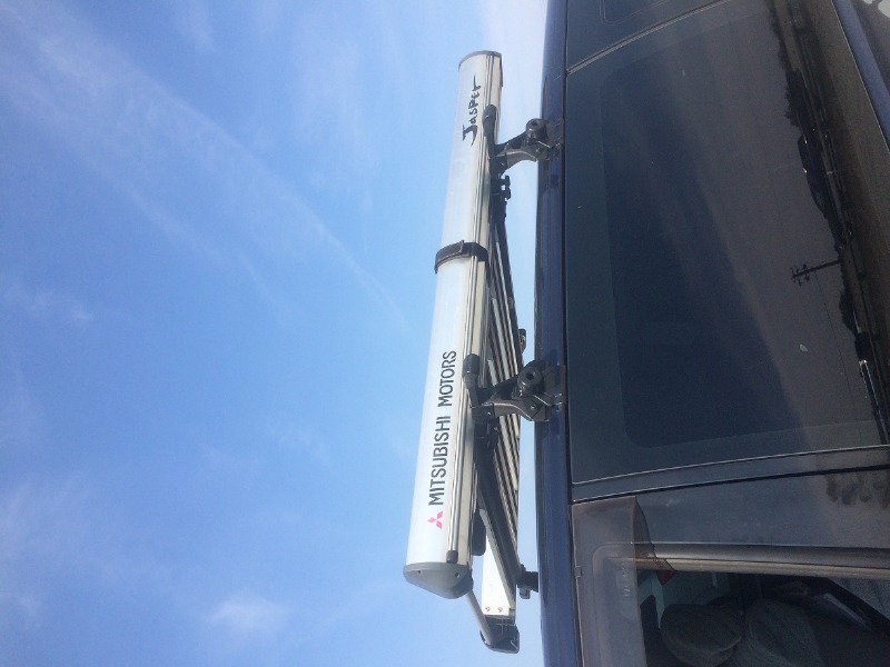 It's in working conditions, the front and rear tubes are adjustable(Up or Down) and will fit a Low roof L400/ L300 Mitsubishi Delica or similar vehicle with rain gutters on the sides. It comes with an in-box retractable awning that unfolds as a camping tent on the sides covering a big area beside the vehicle. It's an used item and some cosmetic details are present. It comes with the metal tubing, ropes, bag and full assembly instructions in Japanese language. Asking $650