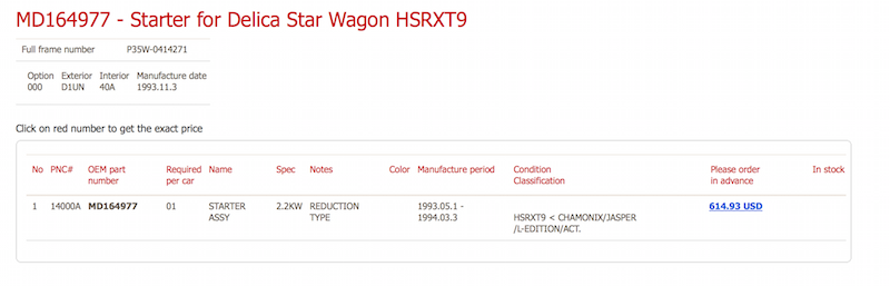 For example in Image 1 and 2, for the starter assembly, I see for part number MD164977 a period from 1989 12.3 - 1990. 07.3 (no 1993 implied?). Also, per Falco's advice (and thank you for doing this Falco on behalf of so many of us!), I have gone to the jdm parts catalogue but get an error before I can proceed (error message image).