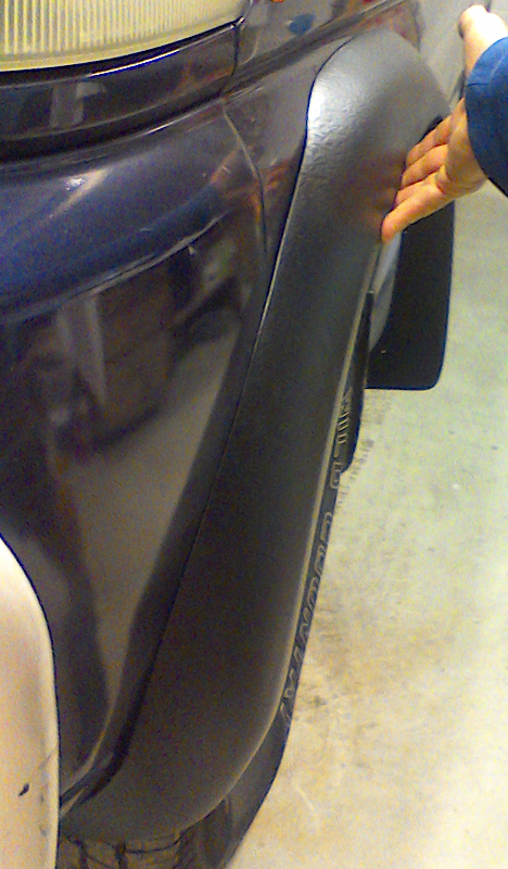 one had a crack so bad from a rear ender accident (the original Deli) it nearly split in 2. The others had stone chips and a few torn mounting holes. A bit of fiberglass work and lots of sanding the set has been given new life. All they need now is the final color dose as the rubber coating won't clean up once it get covered in road grime.