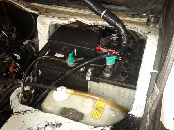 (For reference. The ridiculous wiring is because it's a camper setup- one battery is for starting, the other is a deep cycle for everything else. The starter battery is isolated whenever the van's not running.)