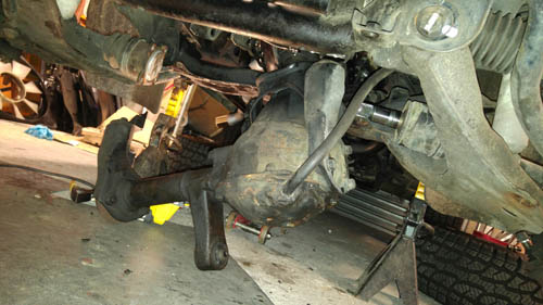 Now remove the driveshaft. Take care to pull it straight out towards you so you don't damage the oil seal in the diff housing.