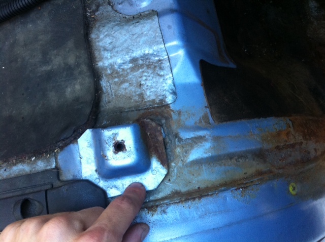 After grinding it down I applied some fibreglass saturated POR15 patches. Quick fix until I can properly MIG weld a patch in. But dry floors ever since. Just my 2 cents so maybe check underneath if you're racking your brain about a wet floor. Cheers