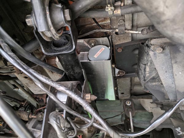 Installed above the gearbox crossmember where it's dry.
