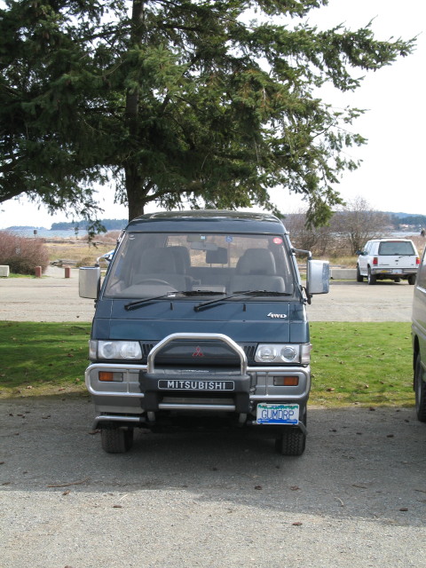 I saw a really gnarly-looking Delica at Woodgrove Centre in Nanaimo in the morning, green, lifted, big tires, fog lights, major roof rack. Also a very pretty JDM Honda Prelude with badges on the back about active 4 wheel steering.