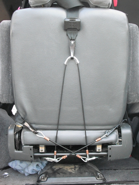 A great big thanks to DeliTan for manufacturing the restraint cables for my car seat install. I finally got them in place and they work great. Full seat functionality and still easy enough to remove and install the car seat as needed. Only thing I might still do is sew up some canvas sleeves to go over the cables. They don't seem to rub against the seat so it may not be necessary.
