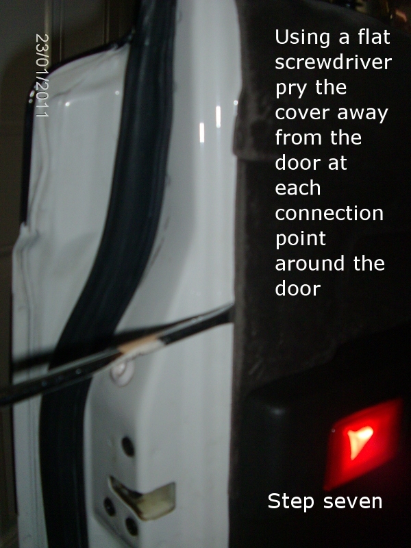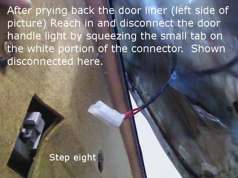 On step eight I took apart the door light from the back but I had read in another post that an alternative is to remove the light cover and unscrew the light fixture from the panel.