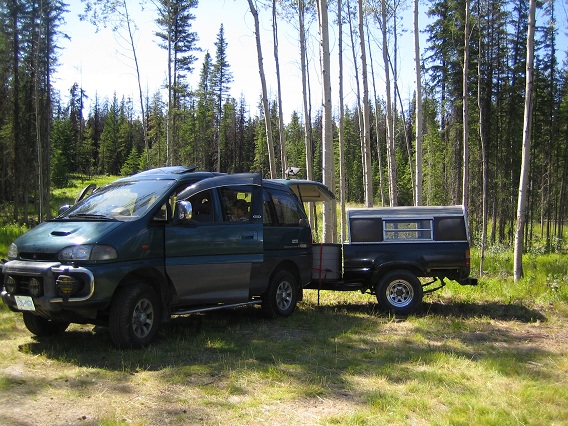 First trip in her Delica many years ago towed a 16 foot aluminum boat loaded with gear and a weeks supply of WVO to Bridge lake - that was a bit much for a L300. We saw a top speed of 45 kph coming up the hwy 24 hill outta Little Fort. Same hill, the following years, in my L300 loaded with 2 guys, gear, no trailer and WVO supply we hit 60 kph.