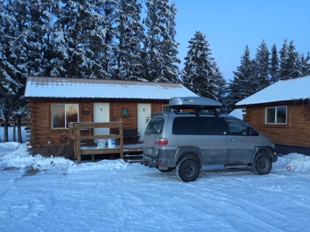 Went skiing in Asessippi, just outside Russel MB over newyears. The extended clan of 15 of us stayed at Big Grass Cabins, a hunting lodge 10 minutes from Russel. The Beast did not enjoy the minus 30s degrees but did like the snowy back roads to the hunting lodge. The Beast is parked in front of sleeping cabins all decked out with its new Thule rack brought by Santa.