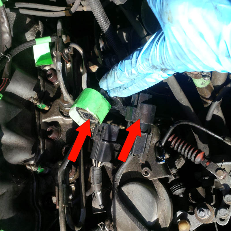 And remove the two connectors near the front of the head on the passenger side, for engine coolant temperature.