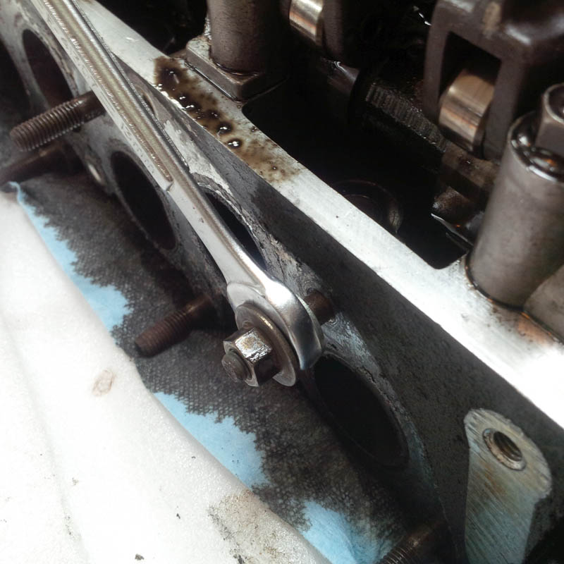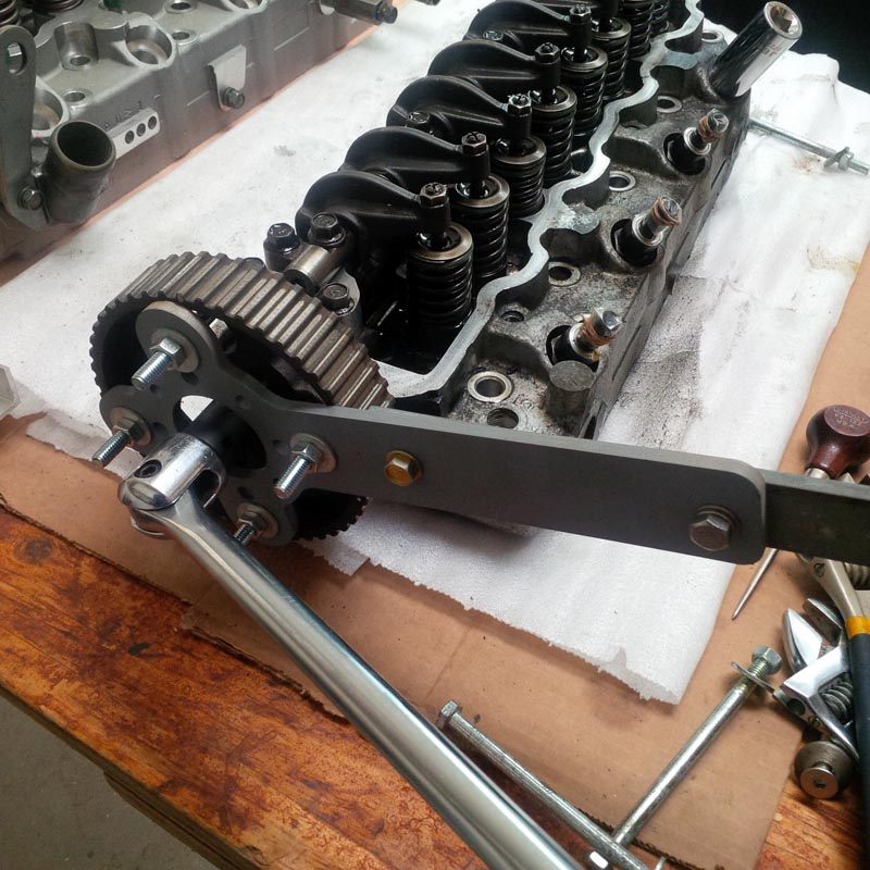 Then attached a 30" long steel bar. NOTE: The cam pulley can be removed while the head is still on the vehicle!