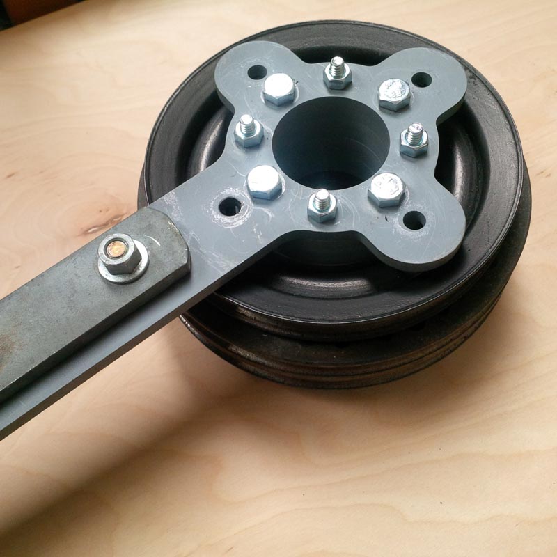 Test fit it to the crank pulley. Looks like it should work, and if it does I'll post up technical drawings and a DXF outline so you can fabricate your own. I'll be the guinea pig.