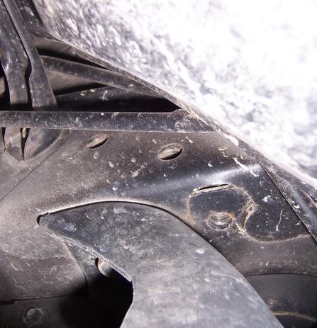 Where the driver's side front bar (the bar with the shackle) is mounted on the frame it's only using 1 bolt but the frame at this location already has tapped holes for 3 more bolts.