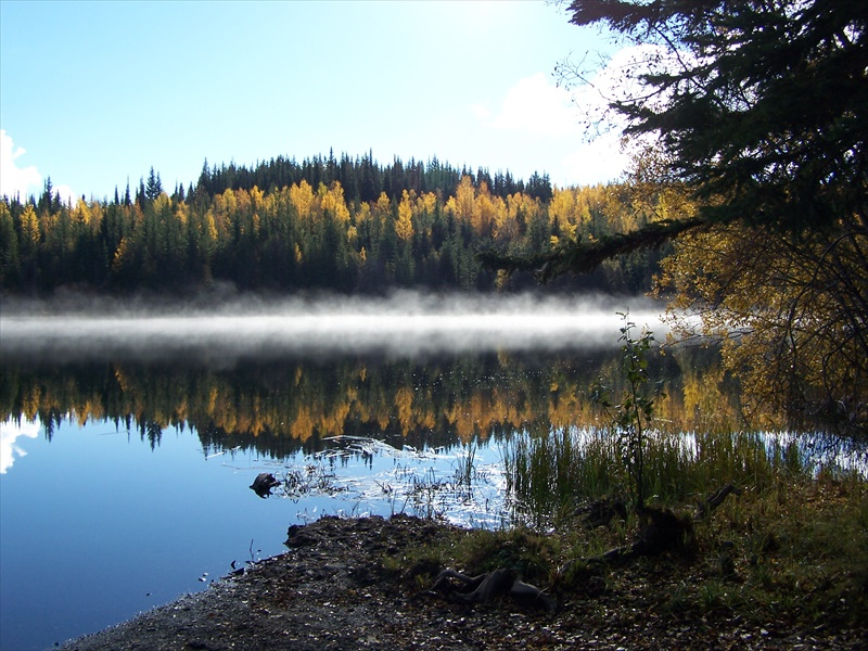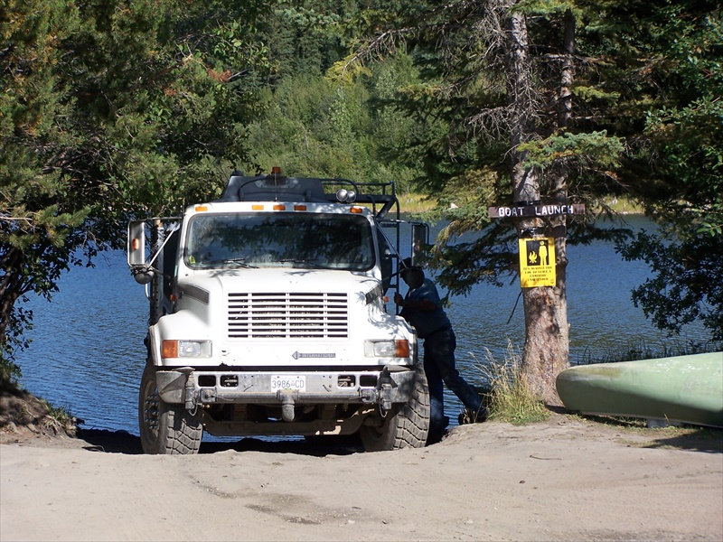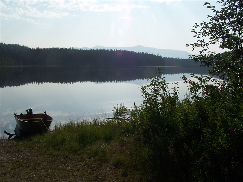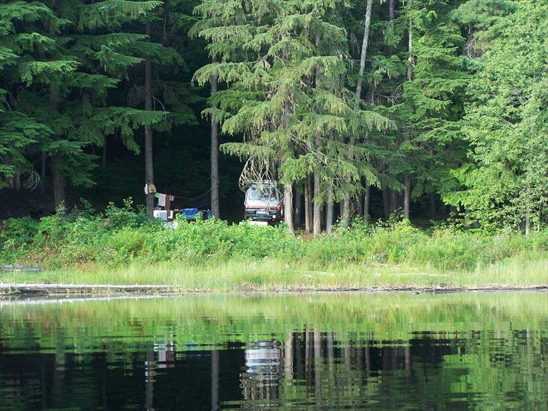It was nice to have the couple of extra posts this last month. I'd still like to see more of bitnaut's setup, maybe this month. I've got some more lakes to share from this summer's trip up Mosquito Lake FSR. Leaving Cariboo heading north once you get back on Mosquito FSR the first lake near the road is Larson. The road isn't marked until you get to the site so it's best to know where the turn is via mileage or GPS. It's only a short distance likely 500-600 m. The site is very small and is suitable for 1 camper. The lake is a teal color and the only lake like this in the area. It appears from the outhouse there are some pretty viscous campers around so keep the food in the van!!