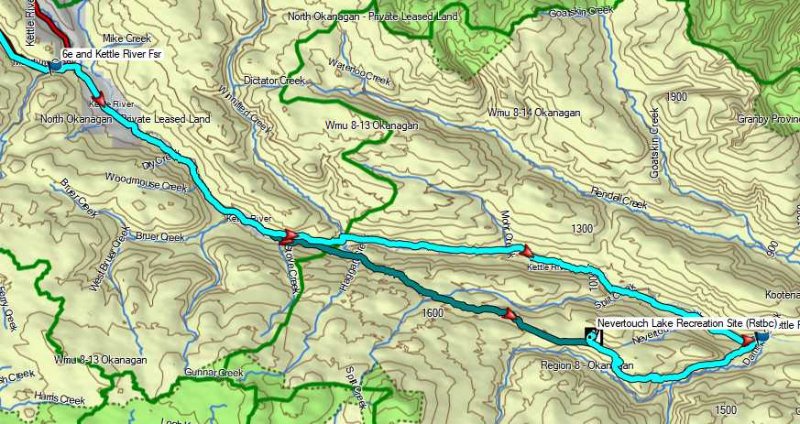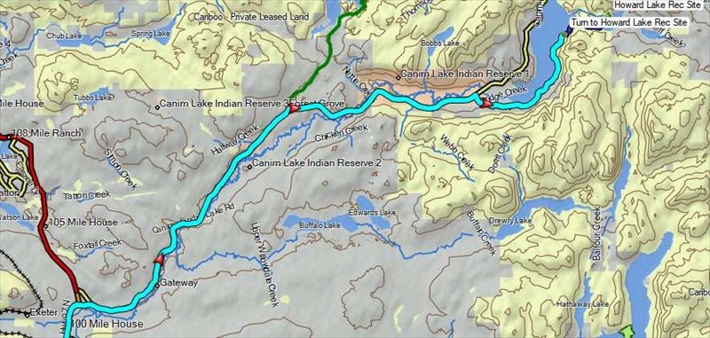 - Cyan route from Clearwater, Magenta route from Little Fort