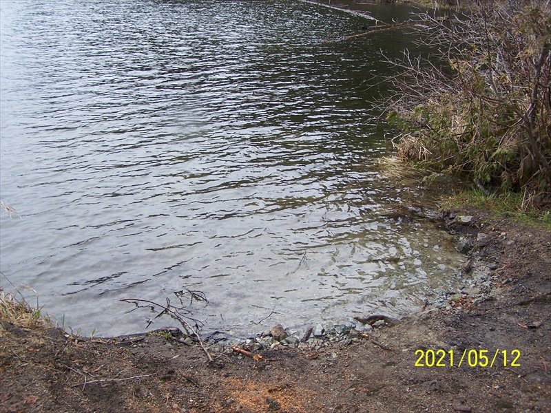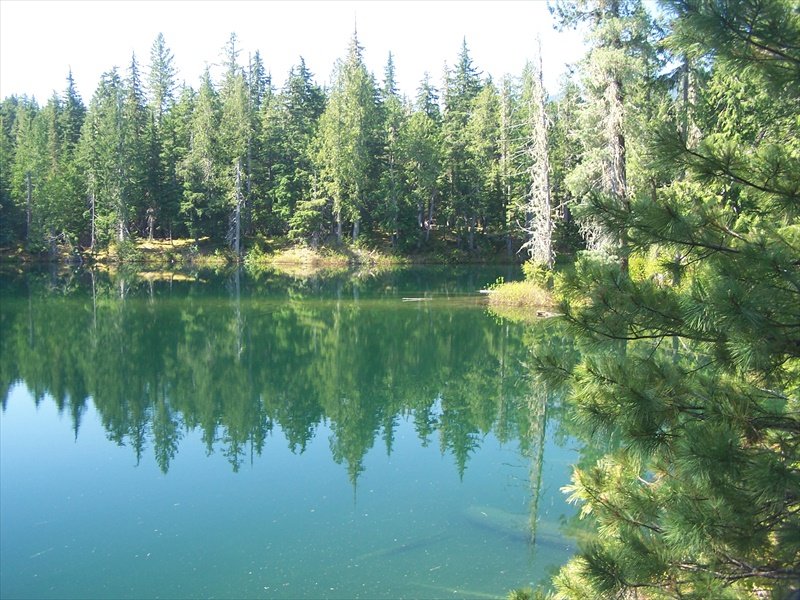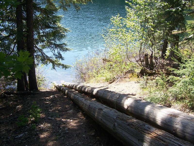 Nellie Lake is a small forgotten Lake next to Shuswap Lake almost at the end of Seymour Arm. It is about 80 km. from Hwy. #1 where you cross the Squilax bridge at the east end of Little Shuswap lake. The lake is in a hollow and the camp site is likely 10 – 15 M above the lake. There are only 4 sites and 2 are very close together. The lake is surrounded by large cedar trees which makes it a great place for a hot summer day. The lake is very clear and you can see the fish along the edge. The boat launch is a bit unusual. It's easy to launch your boat – getting it out is a different matter. Hopefully next month the lake will be from a visit this year.