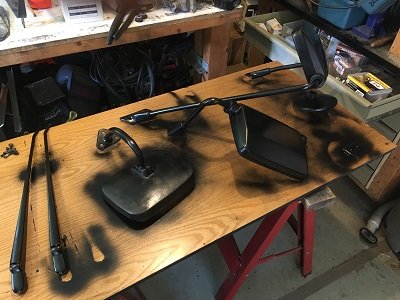 I cleaned up the mirrors and wiper arms with a Tremclad spray-bomb while I was at it.