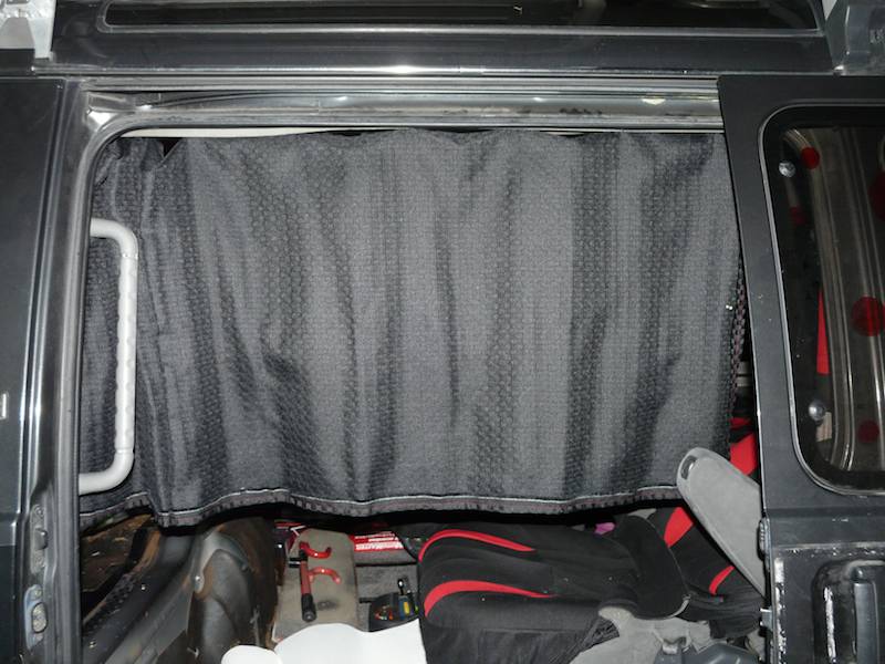 - I have made custom black curtains with red stitching and snaps rather than velcro