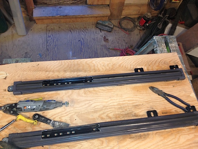 So I got another set of tracks couple weeks ago and we did a mock up in the van. Extending the tracks so that the middle row can be slid all the way to the front was not difficult. Just need to do a bunch of grinding and weld on new tabs. We did it so that the front section of track is not welded to the rear; just remove the fasteners and the end of the track is exposed, allowing seats to slide off the tracks. So if I am going on a road trip I simply remove the front rails and slide off one chair, then replace the track and the remaining chair on the track can slide way up front and back. This will work for the driver's side too.