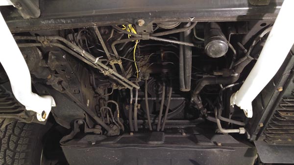 The oil cooler vents into this space, but there's *way* more empty space than the oil cooler needs, and only a few pipes cluttering it.