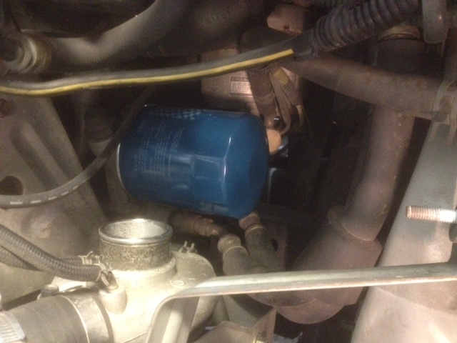 Oil change complete, semi synthetic 15w40 from Crappy Tire. Much easier after removing the air filter housing.