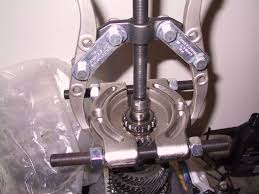 I use a 2-prong bearing/gear puller to remove the bearings, with the tips of the puller ground down to fit into the small space under the bearings, kind of like this: