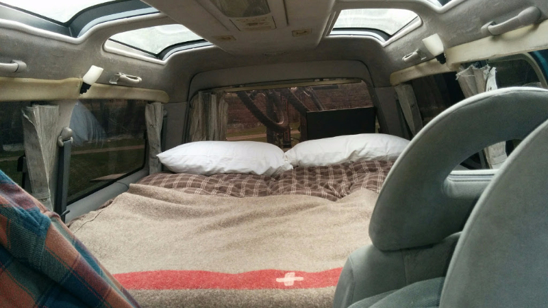 As noted above, one cavaet to keep in mind...the height of the bench-mode platform seat (as I have built it) is quite a bit higher than the standard seats...so if you are tall you are SOL. I am 5'9" and I can sit on the bench and my head sticks into the crystallite window openings without touching the glass (but the bench seat-back must be at a slightly relaxed angle too. In other words, you can't sit too upright otherwise you'll bump your head on the glass. This won't work at all with a low-roof version of the Delica. Even with the high-roof Delica, if you are tall and really want a functional bench to sit on, you'll have to compromise on the height of the items you can fit underneath the platform. I really wanted a standard height cooler and larger rubbermaid bins to fit underneath, so I was more than willing to compromise. It also helps that my wife is petite, and she has no issues at all using the platform in bench mode. The height of the platform does not cause any issues at all in "bed-mode". In fact it is perfect, as it elevates you to almost the window height, allowing for nice views while laying down, yet still use the curtains without impeding them at all. BTW, Cabela's roll-up mattress works beautifully here. Comfortable and fits just about perfectly, especially the length. Doesn't use the entire width though. A couple of inches of platform on each side remains.