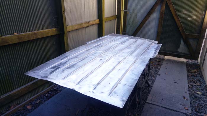 First up, I've made a couple of formers with the desired shape for the flanges. Clamp them to the sheet metal and hammer the metal over, and I should end up with a flange that's flat and straight. -ish. After a couple of days of hammering, we have flanges. They're not beautiful yet, but they're close. And the glass even fits! Bonus! Next I'll be reshaping the internal support structure to fit the new roof sheet metal. I'm starting to realise just how much work I've taken on, and how long it's going to take. There are steps that must happen in the correct order (like priming all the steel before bonding anything in place), and that's going to slow things down quite a bit.