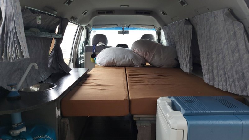 -living space insulated on all sides—floor, walls, roof, tailgate, and custom removable thermal window coverings