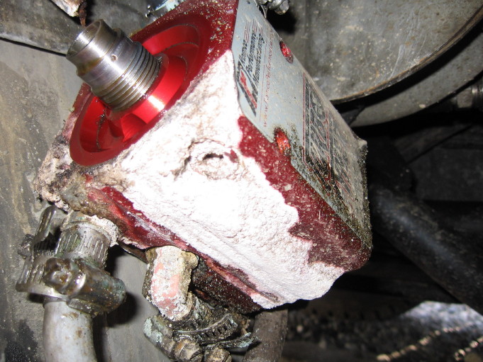 One thing I wanted to mention was when I looked at the VegMax body, it has a white hard but powdery coating running down it. What do you think that is? I have been racking my brain. If there was a coolant leak, would it react with the oil or Veg Max housing material? I will take a pic and post it. I am contemplating protecting it some how or moving it to a less exposed location.